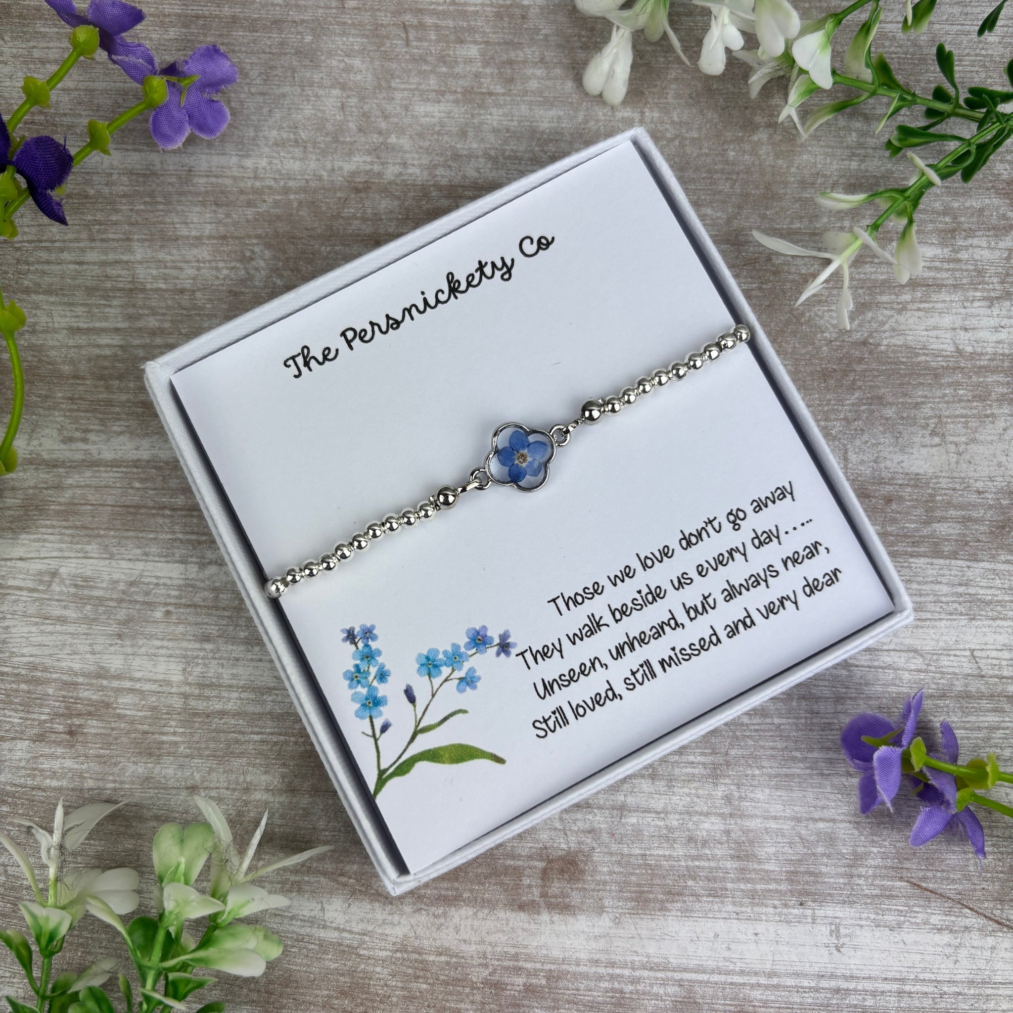 Our beautiful Forget Me Not beaded bracelet is a delicate and meaningful piece, created to honour and remember someone special.