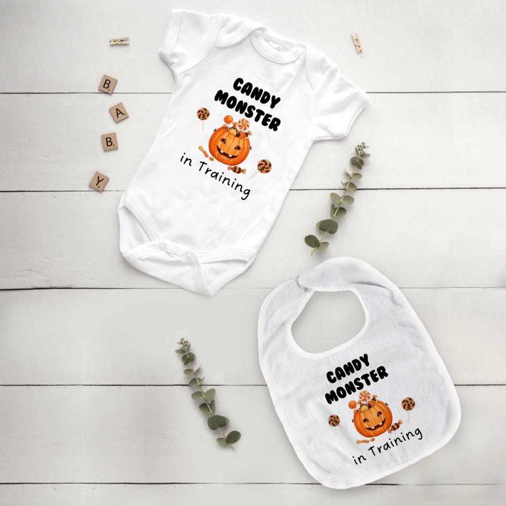 Baby Halloween Outfit and Bib Set – Candy Monster in Training