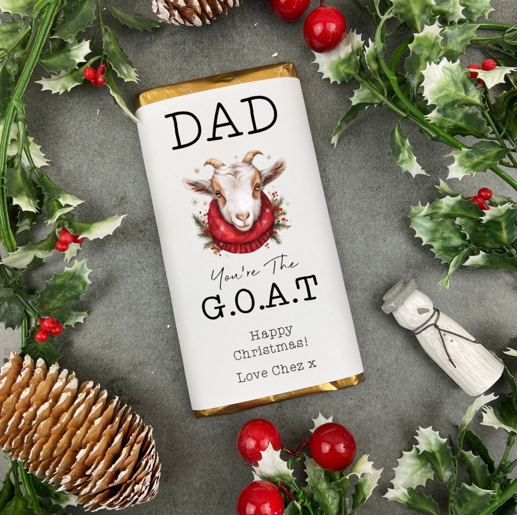 Looking for a unique stocking filler or Secret Santa present this Christmas? Our Personalised G.O.A.T Chocolate Bar is the perfect festive treat!
