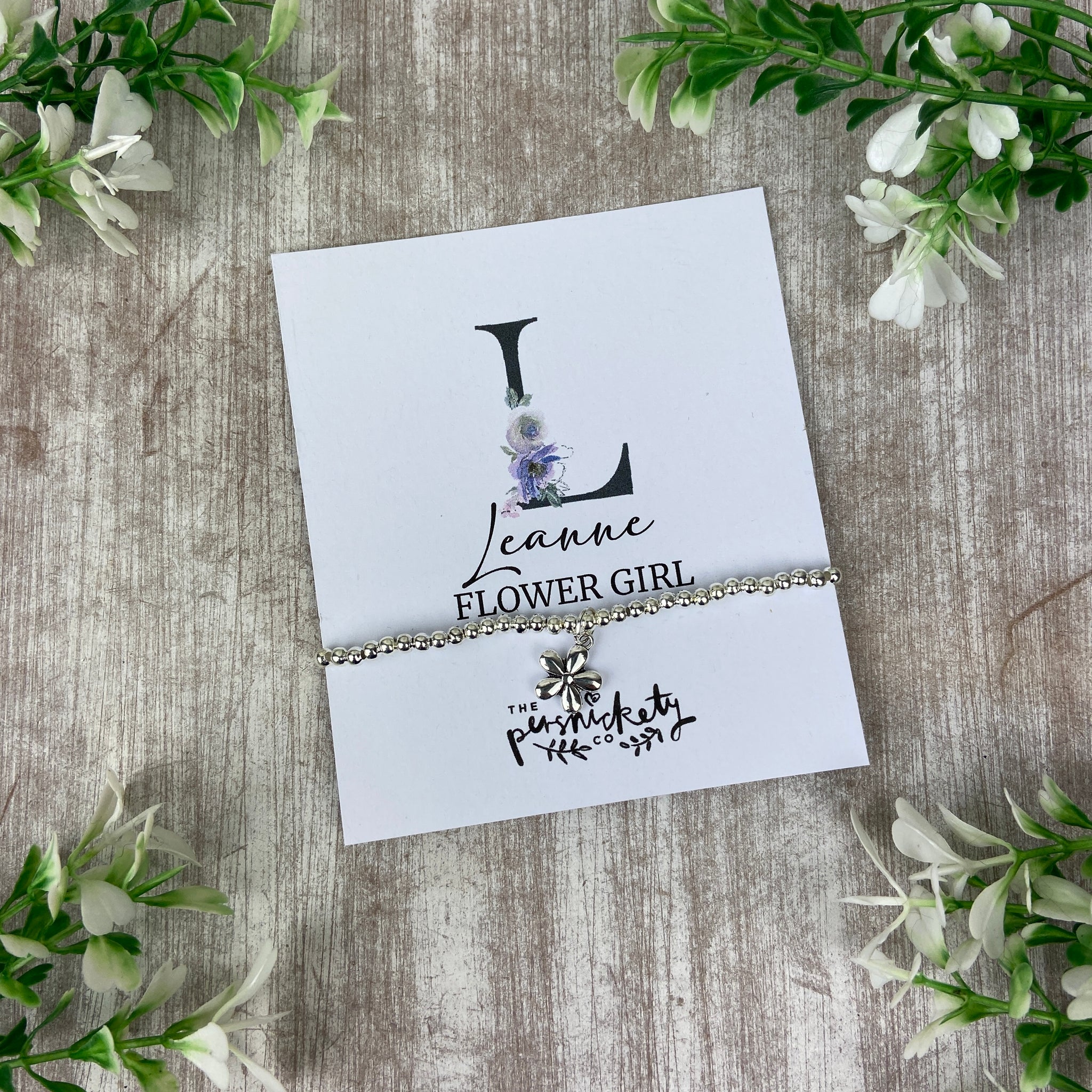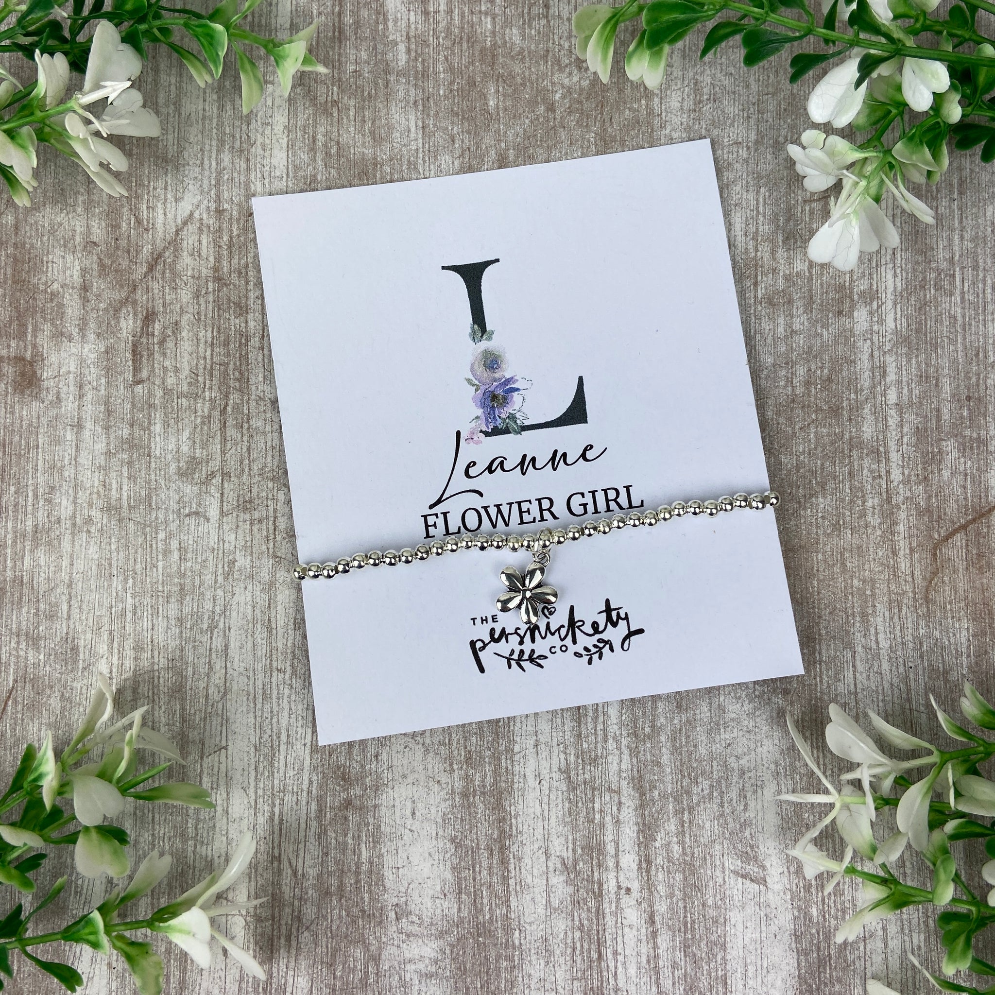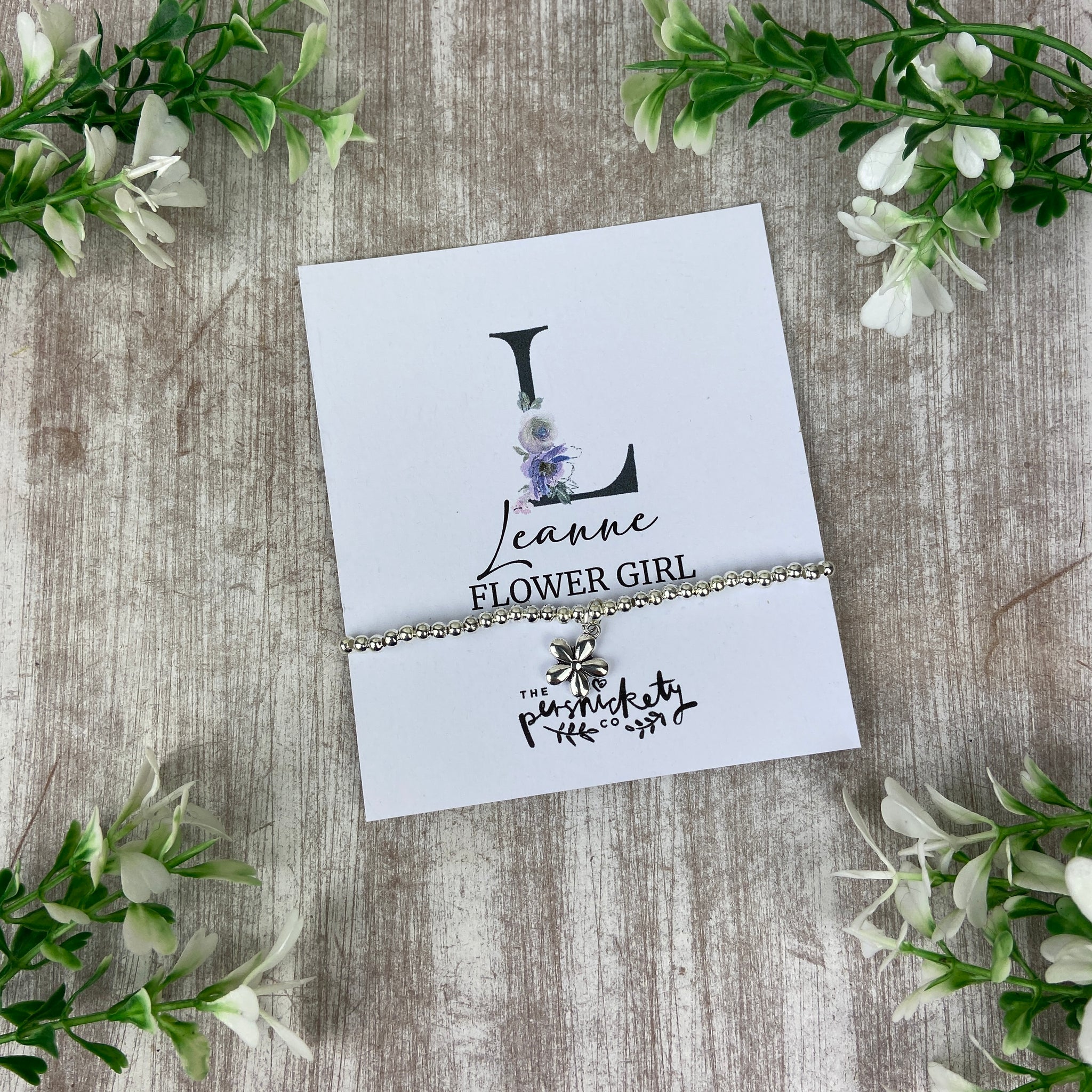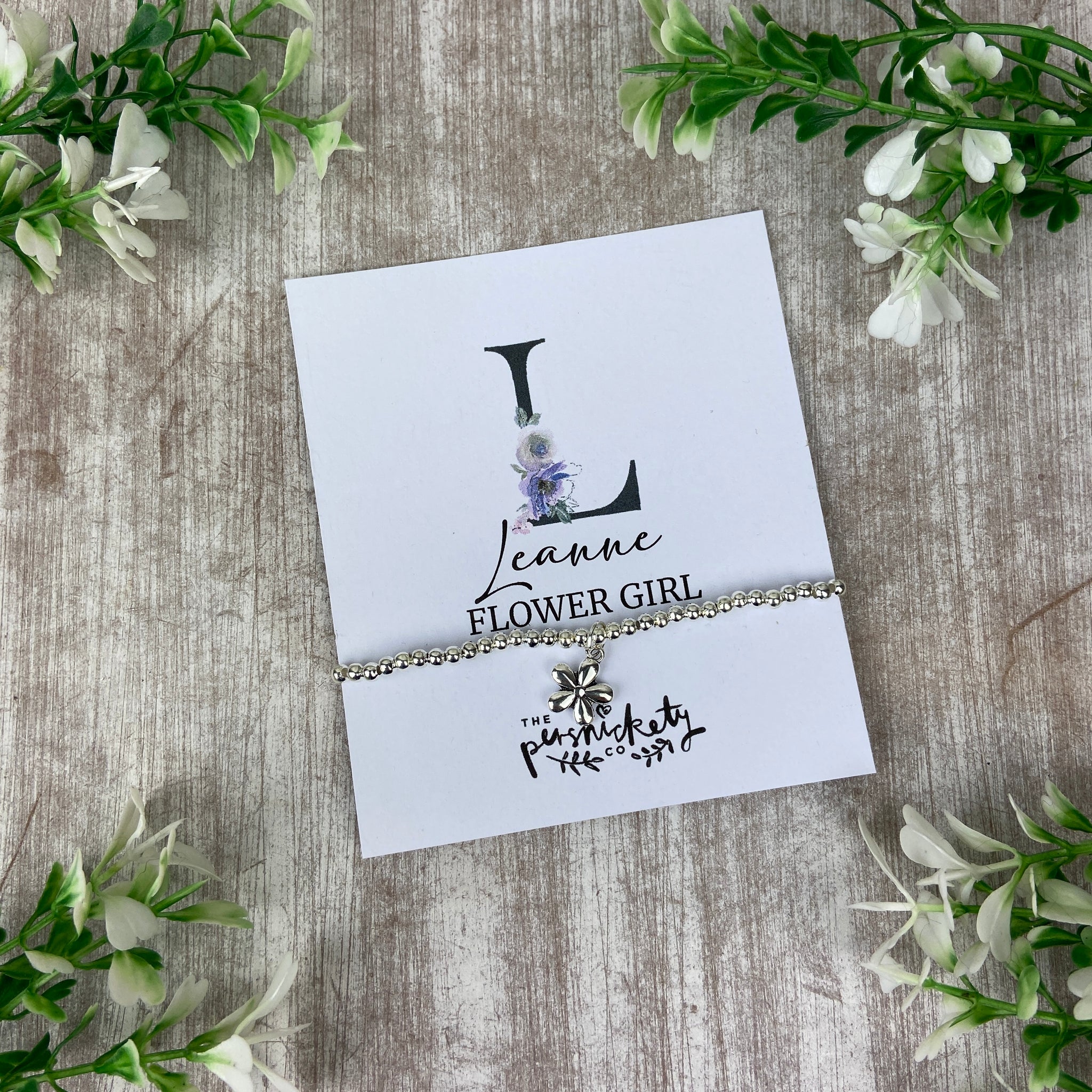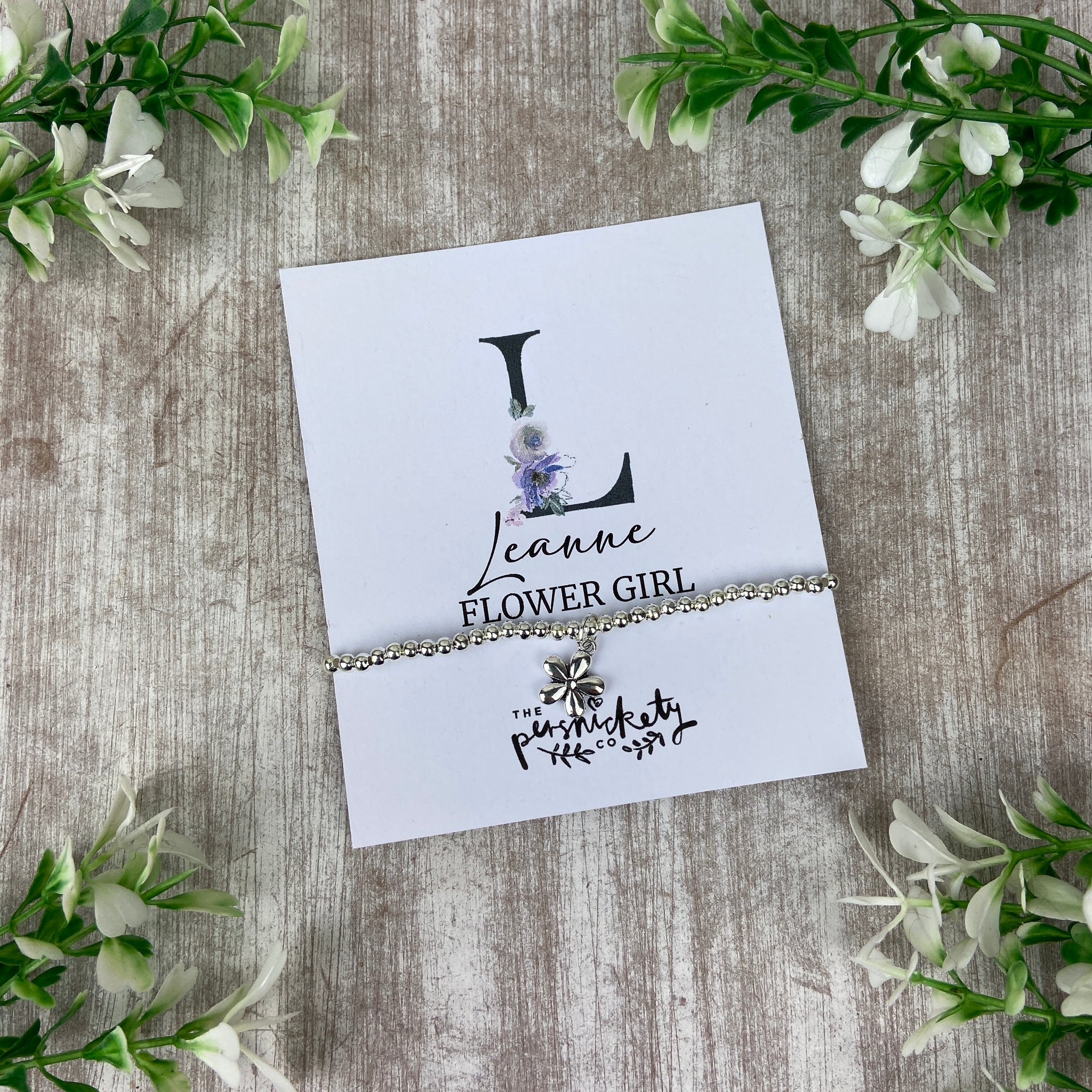 Personalised Flower Girl Beaded Bracelet with Flower Charm