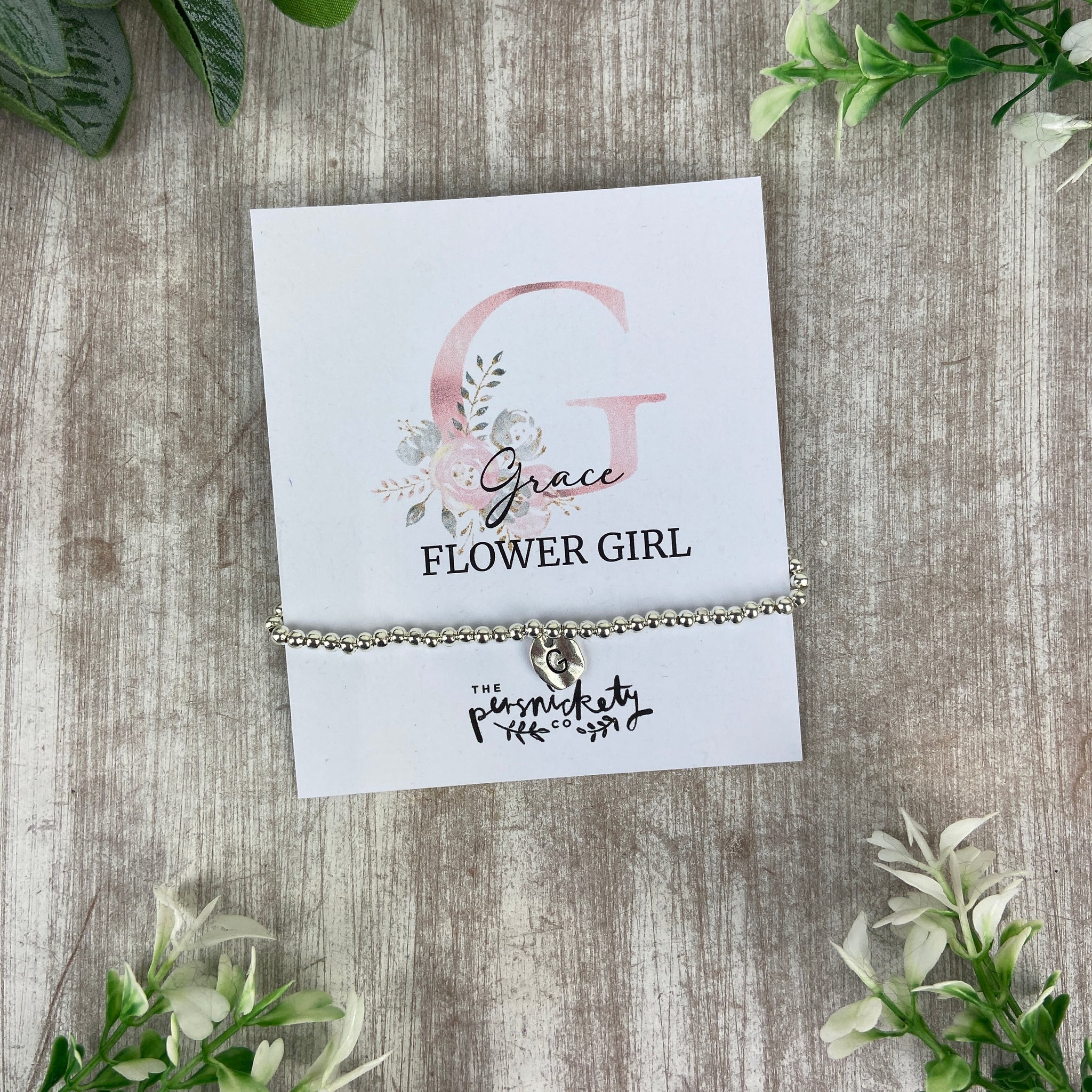 Each handmade bracelet is made from 3mm silver plated beads, with the addition of an initial charm. They are threaded onto clear jewellery makers elastic and come mounted onto a white card (approx. 90 x 90 mm) which is 100% recycled and is individually presented in a craft envelope or you can upgrade to a gift box.