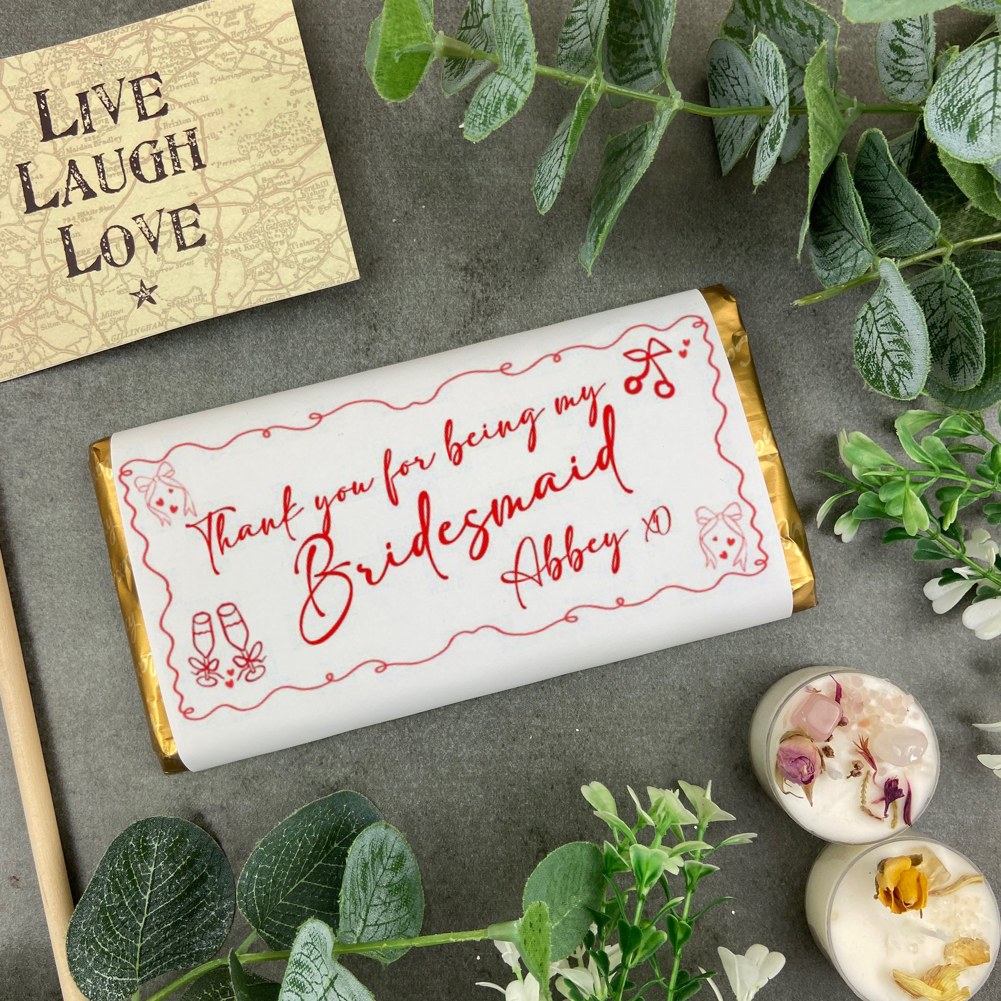 Make your wedding party feel extra special with our personalised wedding chocolate bars – the sweetest way to say 'Thank You' to your bridesmaid, chief bridesmaid, maid of honour, flower girl etc