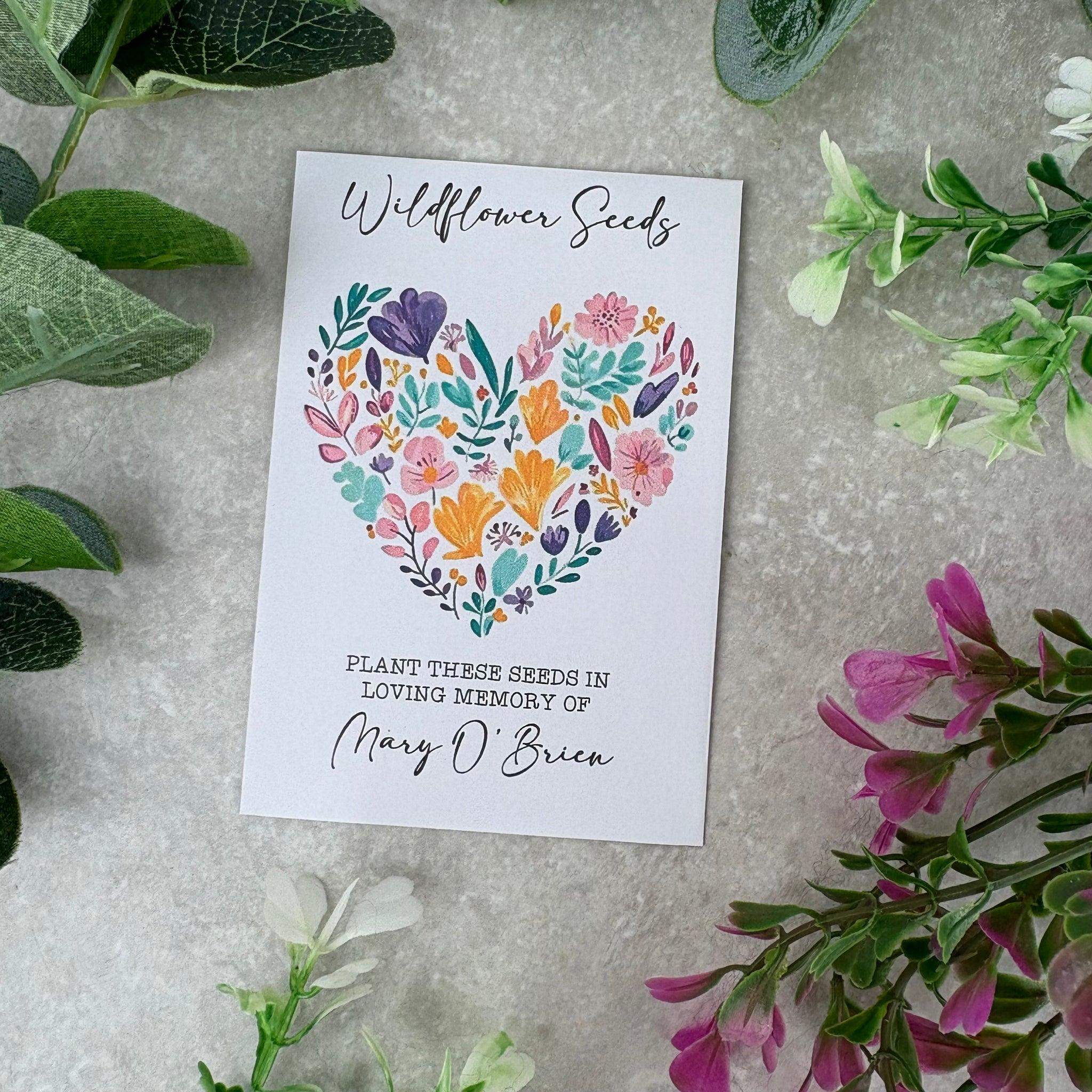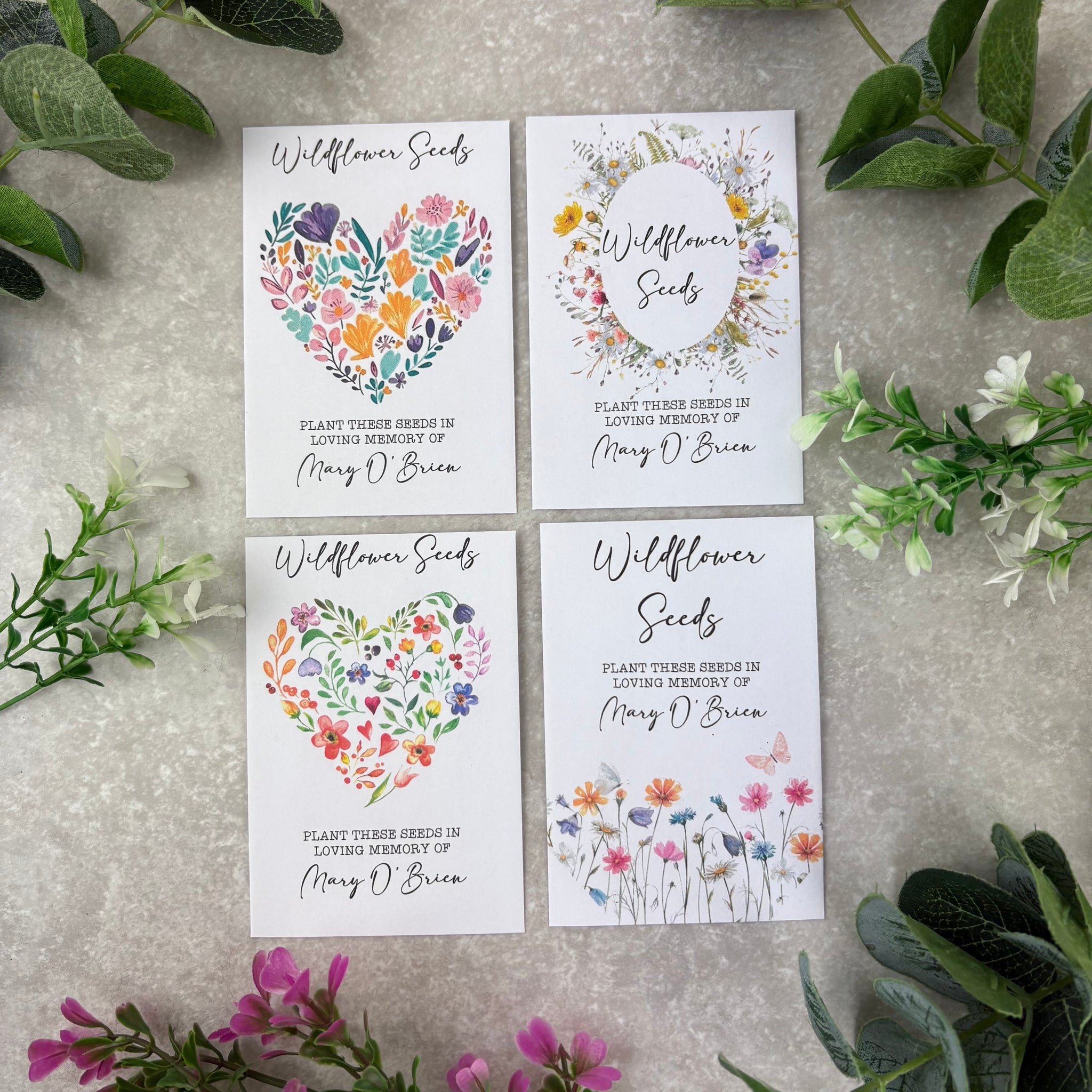 Each packet features a delicate wildflower floral motif, lovingly personalised with your loved one’s name, and optional dates or short message.