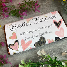 These bars are a lovely personalised birthday gift for your bestie!These 130gsm Galaxy bars are wrapped in a 130gsm glossy paper and can be personalised for an extra special gift.You can choose from a smooth Galaxy Bar or a Caramel Galaxy Bar.Please leave the name that you would like adding to the chocolate bar.