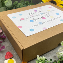Each yummy pick and mix box can be personalised to give that extra special touch for the perfect 16th birthday gift, The brown box which can personalised with any name and contains a super selection of sweets-yum, yum!