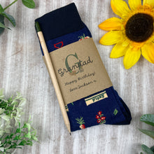 These lovely socks come in a card wrap with the quote 'Happy Birthday' and it can be personalised with any names