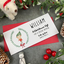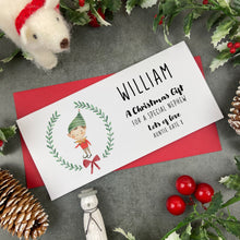 Cute Christmas Elf Boy Wreath Personalised Money / Gift Voucher Wallet