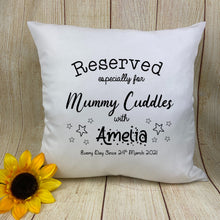 This personalised 'Reserved Cuddles' cushion makes a perfect gift for Mother's Day