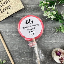 • Load image into Gallery viewer, Personalised 'Thankyou For Being My Bridesmaid' lollipop - Heart-The Persnickety Co