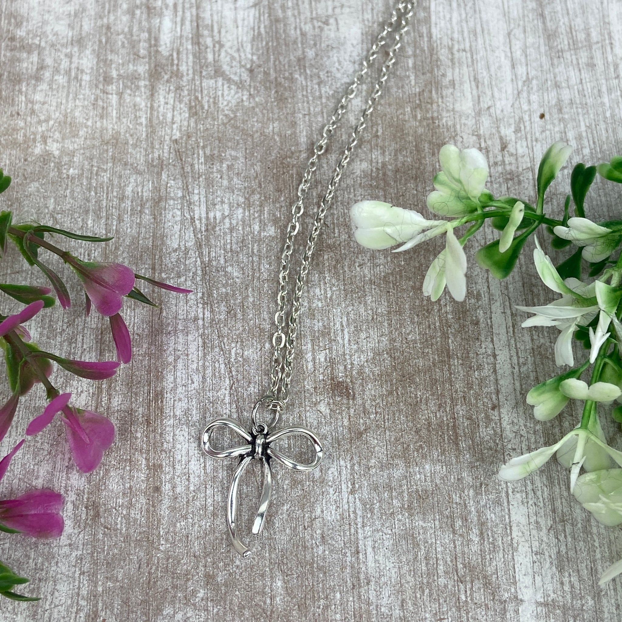 Silver-tone whimsical bow charm