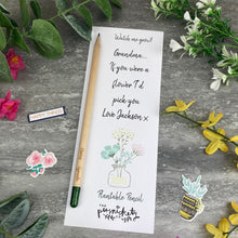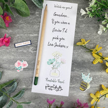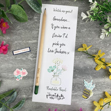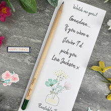 The plantable pencils come attached to a 300gsm backing card. This one features the lovely quote '' If you were a flower I'd pick you' and can be personalised with any name / names