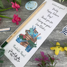 The plantable pencils come attached to a 300gsm backing card. This one features the lovely quote ' Happy Father's Day! Thank you for helping me grow' and can be personalised with any name / names