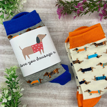 These super cute Dachshund socks come in a card wrap with the quote 'Love You Sausage'